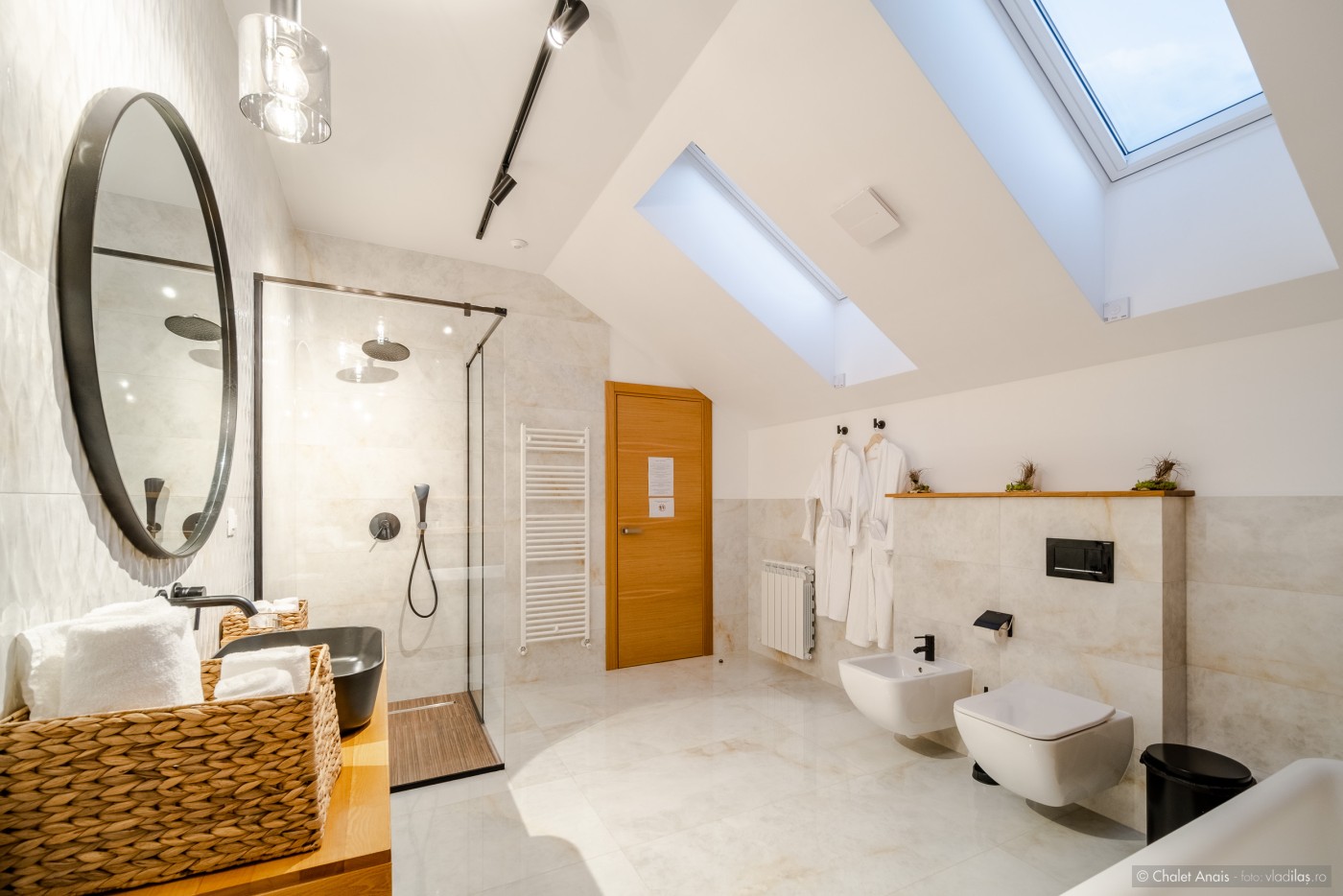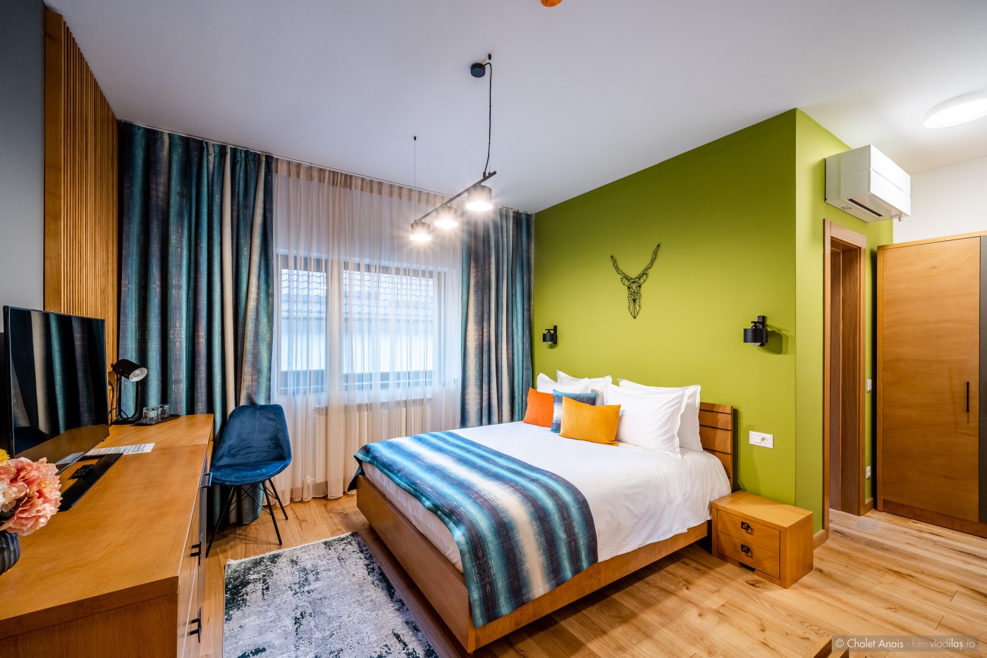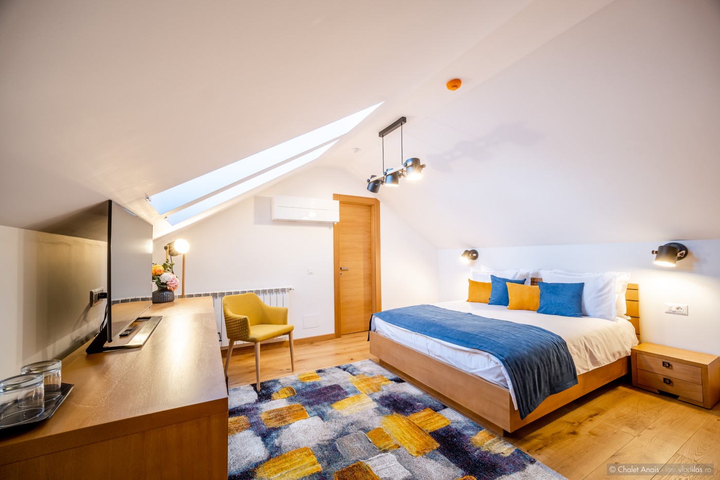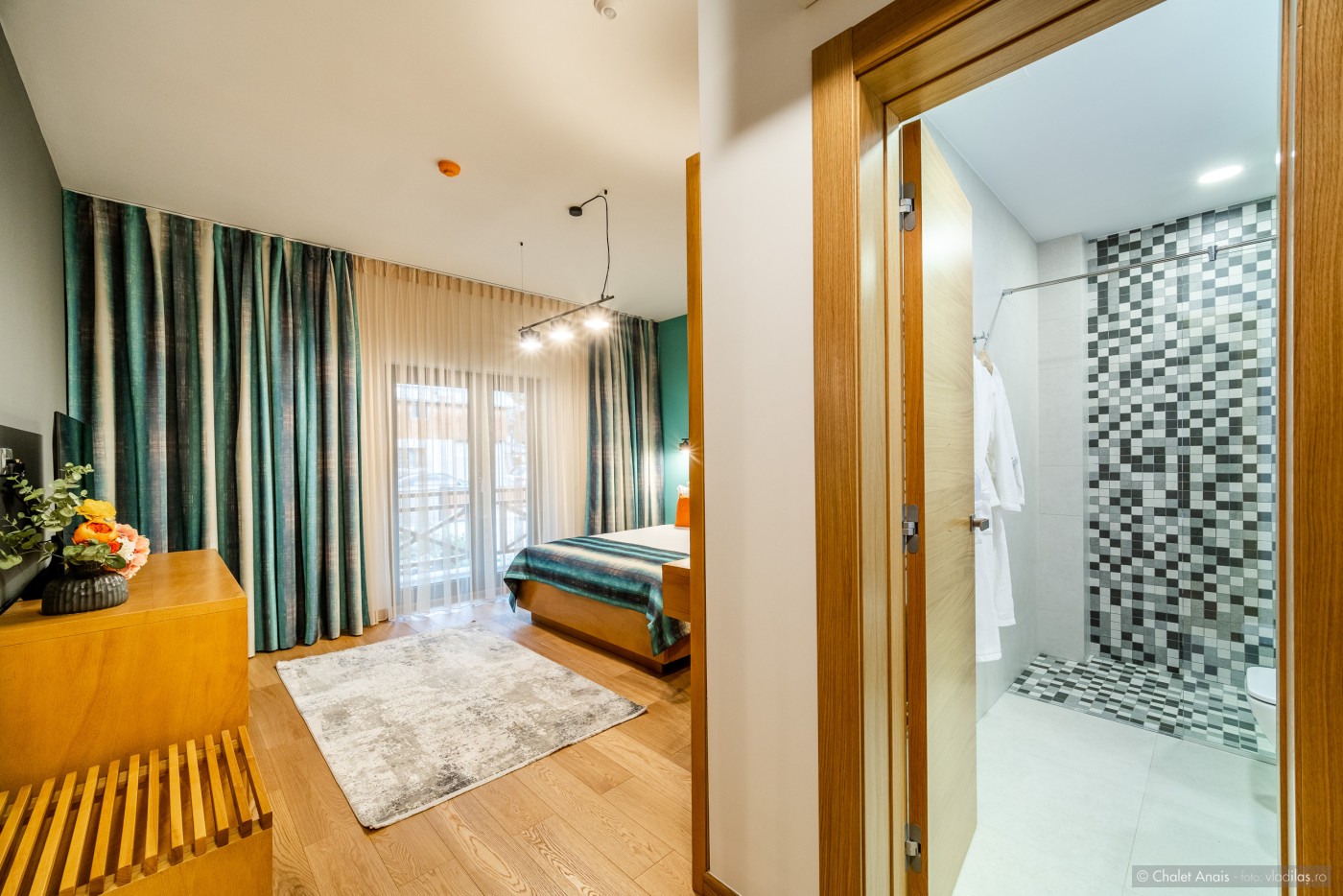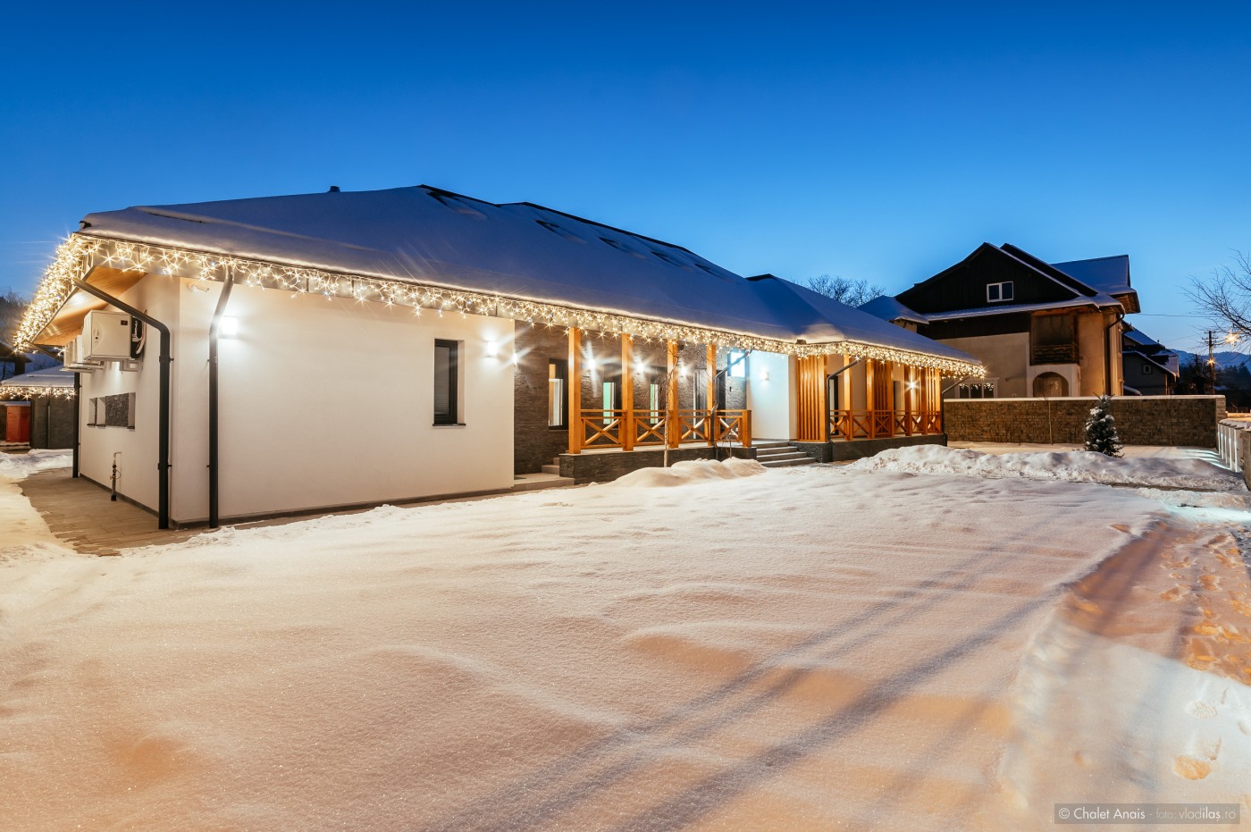 Anais Chalet este locul perfect pentru o vacanță liniștită și relaxantă, departe de agitația orașului și de stresul cotidian. Pensiunea este foarte chic, cu un living deosebit de spațios, cu loc de luat masa și șemineu.